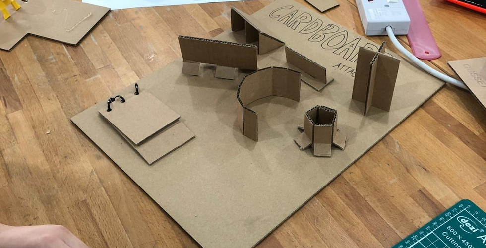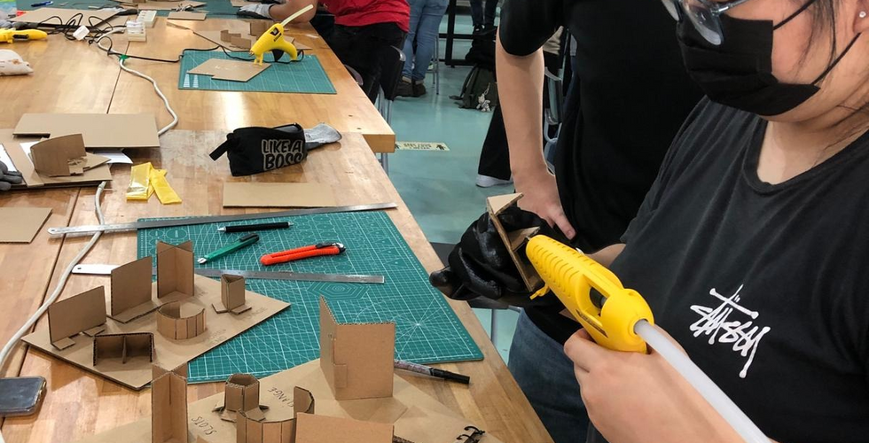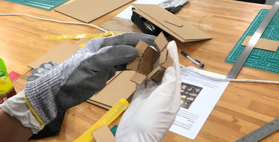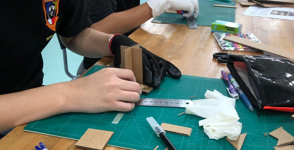Alex - score bend, hole punch + zip ties Syufyan - flange, fold + slot + tabs Emily - gusset, tab + slot Iman - tabs, slot, photographer